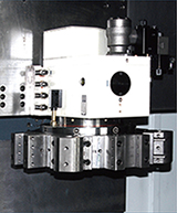 在E型刀塔基礎(chǔ)上具備了鉆攻銑等動(dòng)力刀 具功能,配合主軸的C軸控制,使機(jī)床具 備車(chē)、鉆、攻、銑一體功能,可減少工 件上下料時(shí)間,減少重復(fù)定位誤差,節(jié)約物流空間。